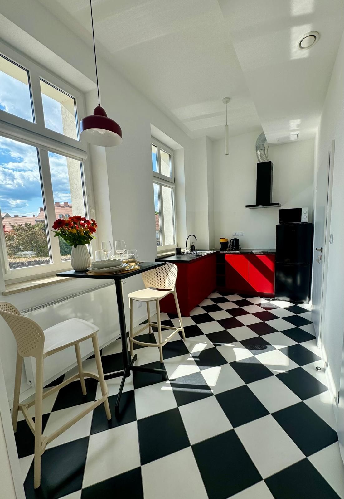 Apartament posiada dwa łóżka pojedyncze z możliwością złączenia oraz oddzielną, w pełni wyposażoną kuchnię. Łazienka z prysznicem zapewnia wygodę, a dodatkowym atutem jest balkon – idealny na poranną kawę. Wnętrze uzupełnia telewizor, kapsułkowy ekspres do kawy i szybki Internet. Apartament polecamy gościom, którzy lubią niezależność i kameralną atmosferę w samym sercu miasta.
