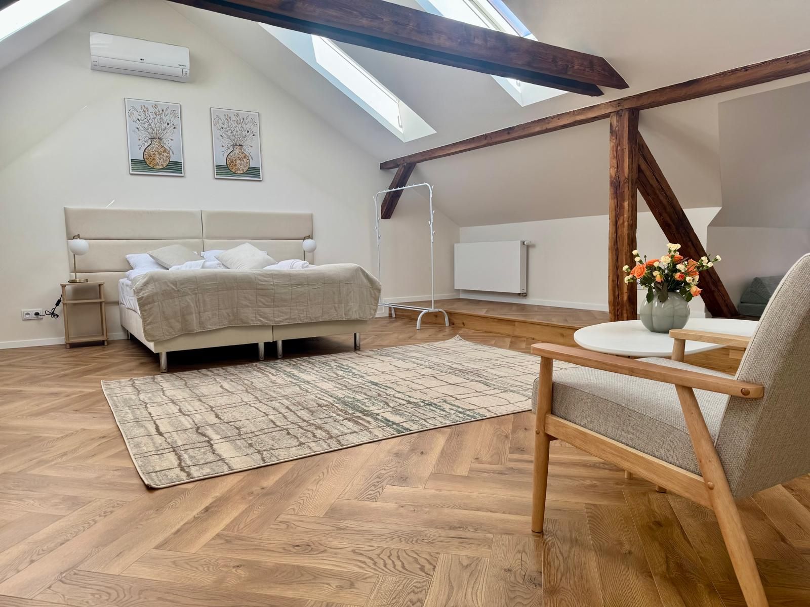 Nowoczesny, klimatyzowany apartament dwupoziomowy dla 2–4 osób. Idealny dla rodzin i grup znajomych.