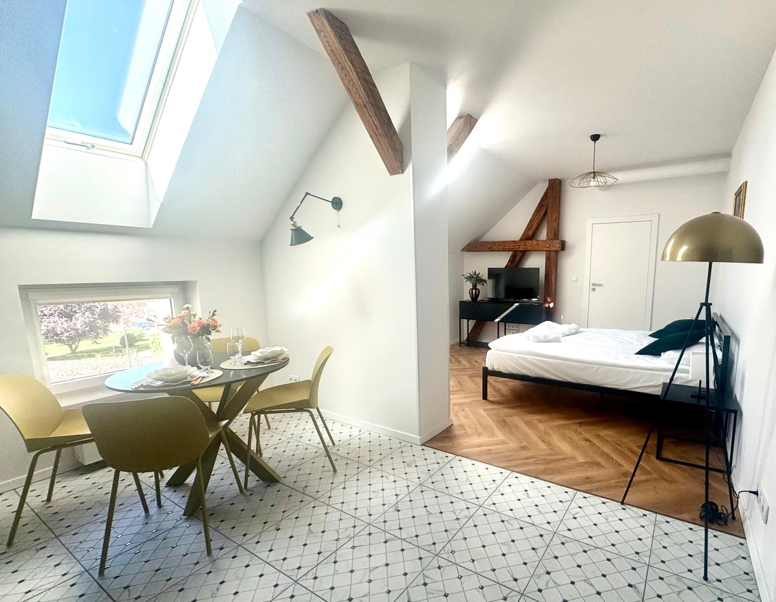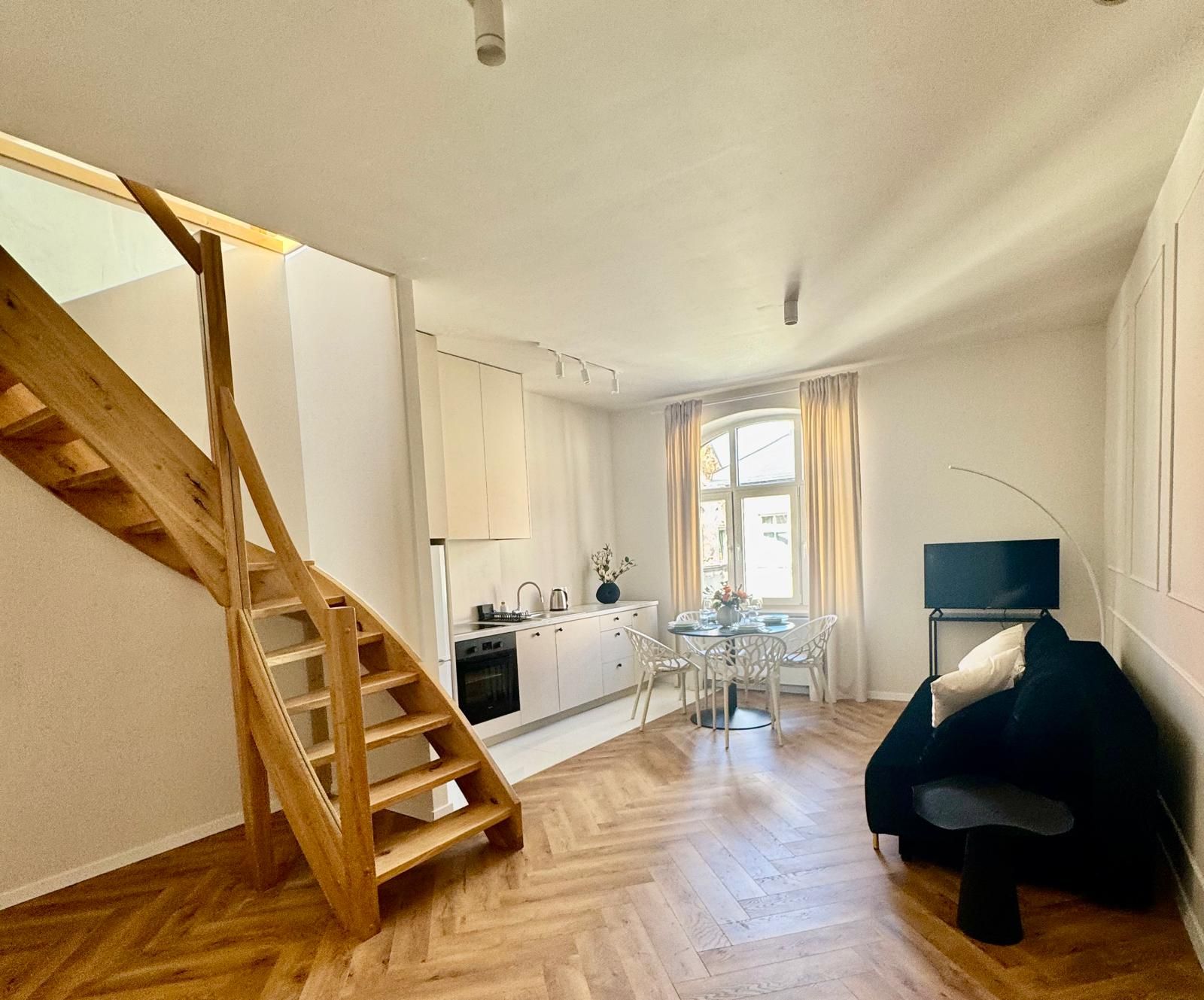 Dwupoziomowy apartament z aneksem kuchennym i klimatyzacją. Przestrzeń dla 2–4 osób szukających komf...